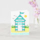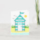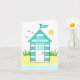 Cabane de plage, peinte en bleu clair et blanc, debout dans les dunes de sable sur la plage sous le soleil d'été.