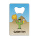 Dessin de cactus souriants avec lunettes de soleil dans un paysage désertique tenant une tasse de bière et donnant des pouces. Texte personnalisé.