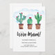 Cette carte de faire-part mobile est décorée de cactus aquarelle, d'un ciel bleu et d'une typographie élégante. Facilement personnalisable avec votre nouvelle adresse. Utilisez l'outil de conception pour modifier la taille, le style ou la couleur du texte. Vous ne trouverez pas cette image exacte d'autres designers pendant que nous créons notre oeuvre. Aquarelle originale © Michele Davies.