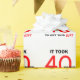 Ce joyeux papier d'emballage cadeau de 40e année est fait spécialement pour lui et dit "Il a fallu 40 ans pour obtenir ce cadeau". Le dessin apparaît sur un arrière - plan blanc avec des lettres rouges et noires pour les mots. Un excellent moyen de rendre un cadeau de 40e anniversaire encore plus spécial. Copyright Kathy Henis