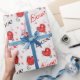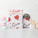 Elégant amour valentines jour emballage papier avec texte d'amour et les coeurs rouges peints. motif coloré pour envelopper votre cadeau romantique pour elle / lui