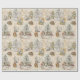 Alice, le lapin blanc, le Tea Party de Mad Hatters et le Cheshire Cat en illustrations colorées sont placés sur un collage arrière - plan de vieilles pages de livres d'Alice au pays des merveilles avec le texte de l'histoire, pour faire ce grand enveloppement vintage de cadeaux littéraires.