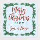 autocollants carrés à customiser pour les cadeaux faits maison lors des fêtes. Les autocollants Holly feuille bordent bleu clair, vert clair et jaune pâle avec texte vert et rouge. "Joyeux Noël" en haut pourrait aussi être "Joyeux Fêtes" ou "Joyeuses Fêtes". Indiquez qui est le cadeau et nommez l'article avec une ligne courte pour les instructions d'utilisation, au besoin.