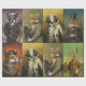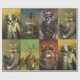 Ce papier d'emballage est illustré avec un groupe d'animaux vêtus vintages et historiques.