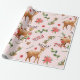 Ce Nouvel An Vacances et Noël Enfants enveloppant du papier avec un motif de baies sauvages roses et des fleurs roses luxuriantes combinées avec des branches d'arbres de Noël vertes, des fleurs rustiques, des cerfs sur l'arrière - plan rose pâle est parfait pour vos cadeaux. Profite-en.