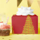 Cadeau Arbre de Noël or sur papier à enveloppement rouge