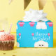 Joyeux anniversaire lunatique et mignon Bichon Frise avec l'enveloppe de cadeau de petits gâteaux