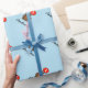 Papier d'emballage personnalisé bleu garçon en peluche pour baby shower ou 1er anniversaire. Elégante conception de papier d'emballage avec le nom de l'enfant et animal mignon dessin animé avec ballon rouge. Couleur arrière - plan personnalisable, par exemple. rose pastel clair pour petite fille, bleu ou jaune neutre. Motif nounours mignon pour nouveau bébé / parents (maman et papa). Un design chic et chic. Faites votre propre emballage cadeau de célébration pour petit-fils / petite-fille / petit-enfant. Illustration enfant adorable avec numéro d'âge personnalisable dans ballon.