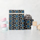 Cadeau bleu sur papier motif géométrique noir