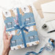 Papier d'emballage kangourou adorable avec un kangourou sucré maman et bébé avec des motifs de fleur boho et un mélange de couleurs bleu et marron du pays. Parfait pour les baby showers, anniversaires ou toute occasion.