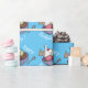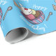 Un joli papier d'emballage bleu avec le motif d'un bol de crème glacée doodle et les mots "Joyeux anniversaire" écrits en lettres blanches. Idéal pour tous (enfants, ados ou adultes) .© ArianeC Illustrations-Tous droits réservés