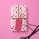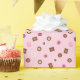 Un rouleau de papier d'emballage avec une impression moderne et simple de divers types de bonbons au chocolat (bonbons). Un beau papier d'emballage pour élever ce cadeau spécial, adapté à de nombreuses occasions de célébrations, y compris les anniversaires, la Saint-Valentin, les anniversaires, et plus encore. Montré sur une couleur rose pâle.