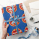Bonne pizza papier d'emballage d'anniversaire pour les enfants. Personnalisez avec votre propre nom et salutation. Design amusant pour les enfants. Grande illustration de pizza ronde avec pepperoni, olives, tomate, fromage et champignons. Un design italien pour les amateurs de pizzas. Bleu ou couleur arrière - plan personnalisée.