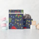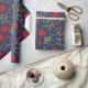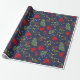 Papier d'emballage élégant avec illustration d'automne botanique. Érable clair, saint, mistletoe et motif de genévrier sur arrière - plan bleu foncé.