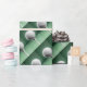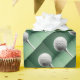 Une balle de golf blanche sur un tee blanc devant un arrière - plan vert.