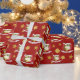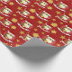 Papier d'emballage de Noël avec l'illustration d'un lion mignon avec casquette Père Noël rouge ; décoration géniale pour les fêtes de Noël, design modèle modifiable avec champ personnalisé pour votre propre texte, illustré par Radka Kavalcova