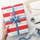 Venez un, venez tous ! Complétez votre décor à la plus grande fête d'anniversaire sous le chapiteau avec nos modèles de papier enveloppant de carnaval de cirque. Ce papier d'emballage pour fête d'anniversaire de carnaval de cirque présente un libellé rouge et turquoise sur un papier d'emballage de fête.