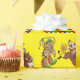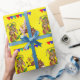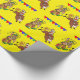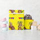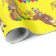 Un cavalier et un rodéo de taureau de bande dessinée d'amusement font le clown avec des drapeaux d'arène de rodéo sur le papier d'emballage cadeau.