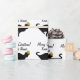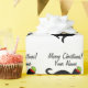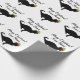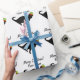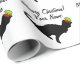 Chat drôle avec papier d'emballage de Noël casquette elfe. Roulettes cadeaux personnalisées avec silhouette d'animal noir. Ajoutez votre nom (animal de compagnie). Couleur blanche ou personnalisée.