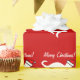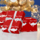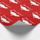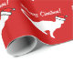 Silhouette blanche rouge de chaton du papier d'emballage | de chat de Noël. Chat de Kitty avec le casquette du père noël.