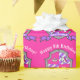 Bouclier princesse chevalier amusant avec une tête de licorne, couronne princesse royale, une étoile et votre âge d'anniversaire. Customisez avec votre nom et votre âge enfants, dit actuellement, Joyeux 5 e anniversaire Georgina. Art graphique unique et design par Sarah Trett pour www.mylittleeden.com sur zazzle.