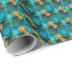 Motif textile moderne turquoise et jaune doré, papier d'emballage personnalisable pour tous les usages artisanaux et de décoration, y compris les cadeaux d'emballage - choisissez parmi trois types de papier.