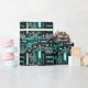 design cool avec un gros plan d'un circuit board en noir, blanc et bleu avec une touche festive. Envelopper le papier avec un design personnalisable pour vous permettre de personnaliser avec votre propre texte, photos et idées. Image créée à l'aide d'une photographie originale et de techniques numériques.