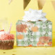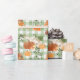 Un joli papier d'emballage de chèque vert et blanc recouvert de citrouille orange
