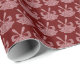 L'emballage de vacances Festive présente des cloches roses éclatantes motif sur un arrière - plan rouge foncé.