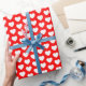 Cadeau Coeurs, blanc sur papier d'enveloppement rouge