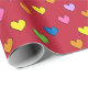 Un papier d'emballage avec un motif cardiaque coloré sur un arrière - plan rouge. Customisez la couleur arrière - plan parmi d'autres options.