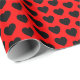 Cadeau Coeurs, noir sur papier d'enveloppement rouge