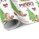Le motif répété sur ce joli papier d'emballage de Noël est l'image d'un adorable Pembroke Welsh Corgi Dog enveloppé dans une série de lumières de Noël. Le chien est assis parmi des emballages de cadeaux aux couleurs vives à côté d'un sapin décoré. Un oiseau bullfinch atterrit sur l'arbre. Stylisé rouge et noir buffle texte plaid dit MERRY CHRISTMAS", et votre propre signature est dans deux champs pour vous de customiser. Mignonne !