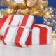CORRESPONDANCE : Papier à enveloppement de Noël en bandes rouge et blanche. Consultez la collection de papiers correspondants dans cette série Y compris les solides qui correspondent aux rayures.