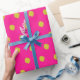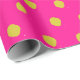 Ce papier d'emballage est recouvert de pois vert citron sur un arrière - plan fuchsia.
