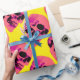 Cadeau Crâne rose sur le papier d'emballage jaune