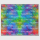 Superbe papier d'emballage brillant éclatant avec un arc-en-ciel de couleurs dans un design qui borde entre l'art fractal et la teinture à cravate. "Joyeux anniversaire" peut être modifié pour convenir à tout événement ou supprimé complètement (laissez simplement le champ de texte vide). ** REMARQUE : La vue "plat" vous montre une section de papier de trois pieds de long. La longueur minimale du rouleau est de six pieds, de sorte que la vue "Seam" vous montre où la première section de trois pieds rencontre la deuxième section de trois pieds. Ainsi, un rouleau de 30 pieds par exemple aurait dix sections de 3 pieds qui se répéteraient.