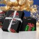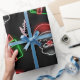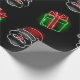 Joli et amusant rétro lumineux néon super clair Santas et cadeau papier d'emballage de Noël sur un fond noir.