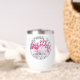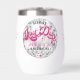Personnalisez ce mug thermique de qualité pour le vin / café avec des noms de mariée et d'invités tendance et rétro des années 70 sur le thème de la dernière disco de la mariée pour l'enterrement de vie de jeune fille / week-end, avec une boule disco argentée et des polices de caractères rose chaud groovy et des accents de design rétro en forme d'explosion d'étoiles sur le devant, et le nom de la demoiselle d'honneur ou de l'invité de la fête au dos. Entrez facilement les détails de votre texte et faites-en votre propre ! Les demandes de conception personnalisées et les questions sont toujours les bienvenues - cliquez sur le bouton de message, ou envoyez un e-mail directement à : contact@figandlilyco.com