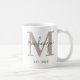 Élevez les moments quotidiens avec cette tasse personnalisée au monogramme dans un ton taupe chaud élégant. Conçue avec une esthétique intemporelle et épurée, cette tasse est un cadeau chic pour les collègues, les mariées, les amis ou les proches qui apprécient le style minimaliste. Parfaite pour les douches de mariée, les mariages, les cadeaux de bureau ou les présents de remerciement attentionnés, cette tasse monogrammée ajoute une touche personnelle sans être écrasante. Sa palette de couleurs neutres se marie parfaitement avec n'importe quelle cuisine ou espace de travail, ce qui en fait un objet de décoration polyvalent qu'ils utiliseront quotidiennement.
