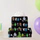 Papier d'emballage noir représentant tous les monstres du livre The Ten Little Monsters debout en ligne.