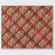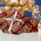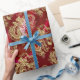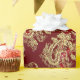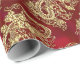 Cadeau Dragon d'or embouti sur papier satin rouge