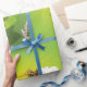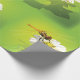Une libellule survolant une fleur blanche. Cette conception semble vraiment efficace sur ce papier d'enveloppement