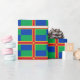 Papier à envelopper avec design avec un drapeau du comté historique de Lincolnshire, en Angleterre, Grande-Bretagne; drapeau vert et bleu avec croix rouge et jaune et une fleur de Lis au centre