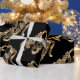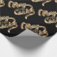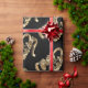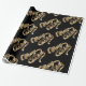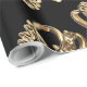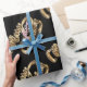 Élégant Faux Papier Aluminium Or Motif Script Chic Papier Cadeau Festif Noir et Or Noël
