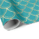Ce papier d'emballage présente un élégant motif de pétoncle faux or sur arrière - plan turquoise.
