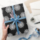 Ce papier d'emballage noir et blanc est accentué d'un flocon de neige blanc éclatant, qui s'harmonise parfaitement avec tous les articles de l'Elegant Snowflake Holiday Collection.