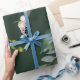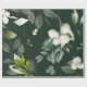 Cet élégant papier d'emballage d'hiver avec un motif de fleurs blanches fleuries et feuilles, et brindilles sur le noble arrière - plan vert foncé est parfait pour les cadeaux d'hiver. Profite-en.