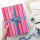 Ce papier d'emballage est affiché en couleurs Pink and Red stripes.