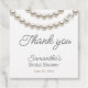 Étiquettes de faveur de mariage élégantes blanches et beige représentant un collier de perles argentées en aquarelle. Il est très facile de les personnaliser avec vos détails.
